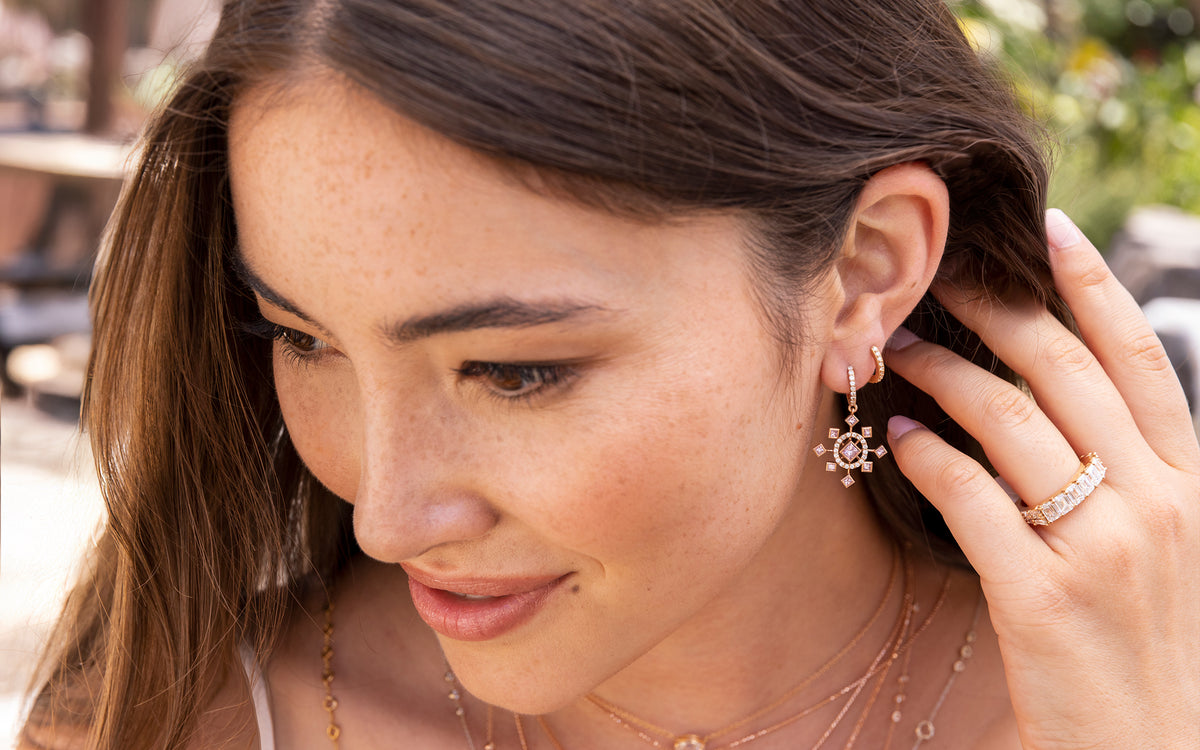 one of a kind beauty, for a one of a kind you – available So unique. So beautiful! You're going to love these geometric yet feminine pale pink diamond and white diamond snowflake earrings: At her center and outer edges,...