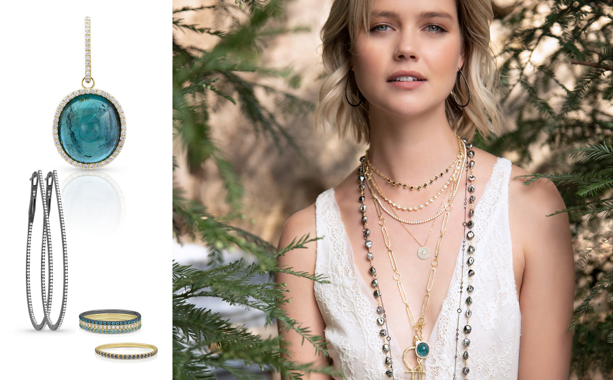 Elegant droplets of sultry black gold lined in more than half a carat of diamonds, all forward-facing. Did you catch Claire Danes wearing our 1.5 inch yellow gold version on the series finale of Homeland on Showtime? Talk about sparkle...