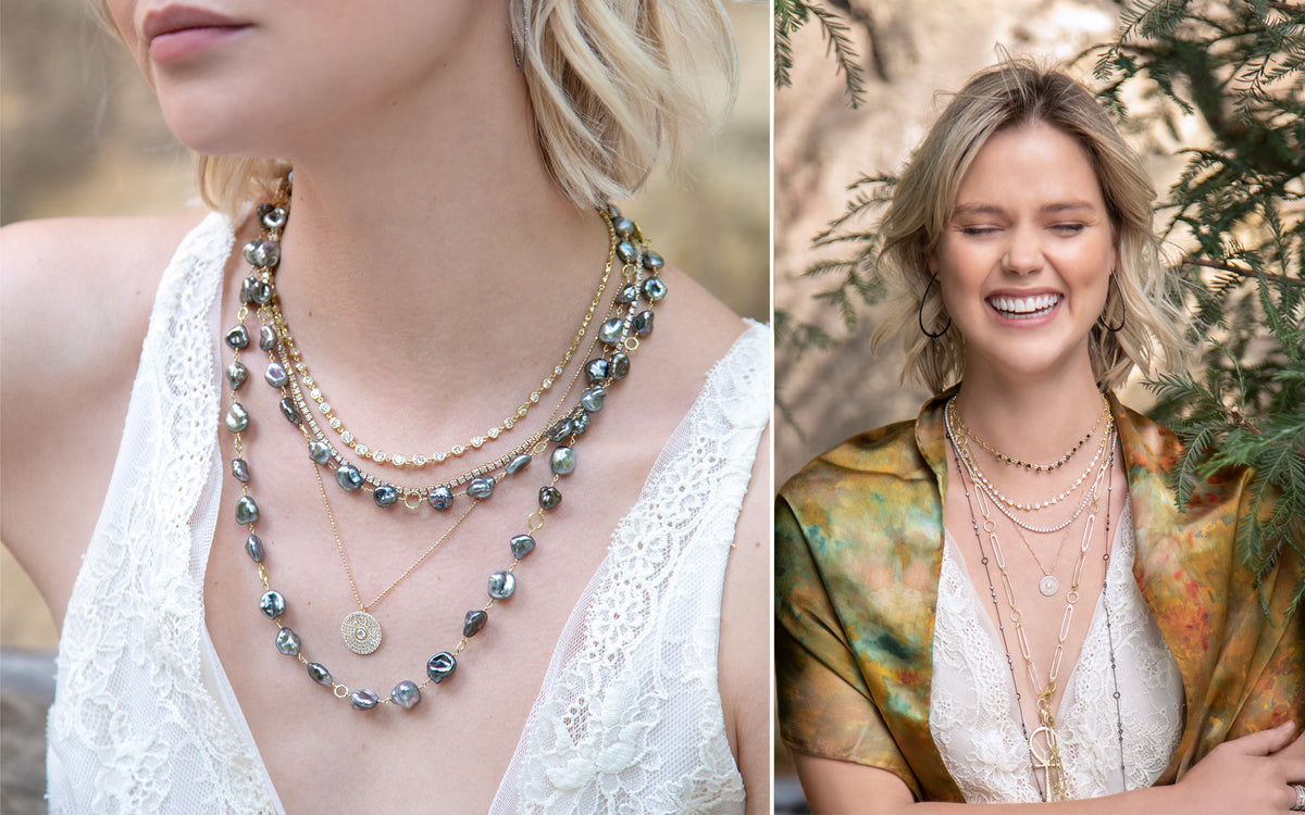 You'll love — and wear — these lustrous keshi pearls. Their naturally irregular shapes invite light to dance in their steely, deep green, and silvery tones. Each strand is subtly unique.We're loving our keshis layered either with traditional Tahitian pearls...