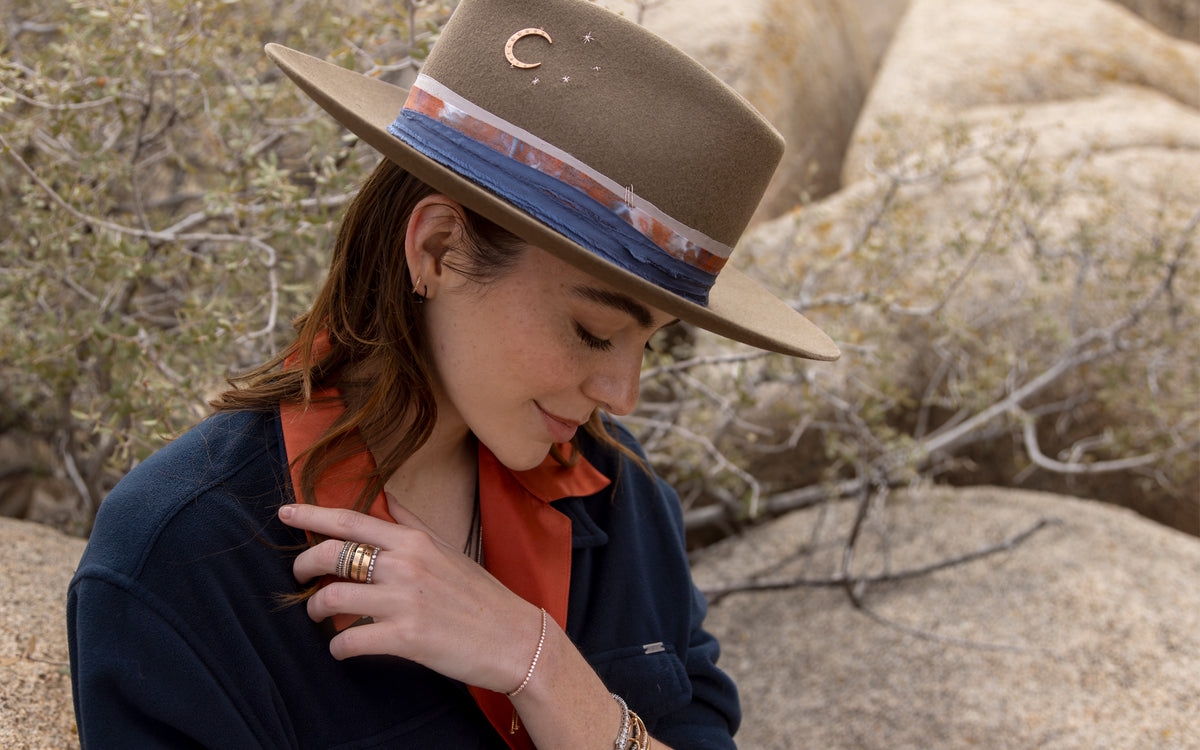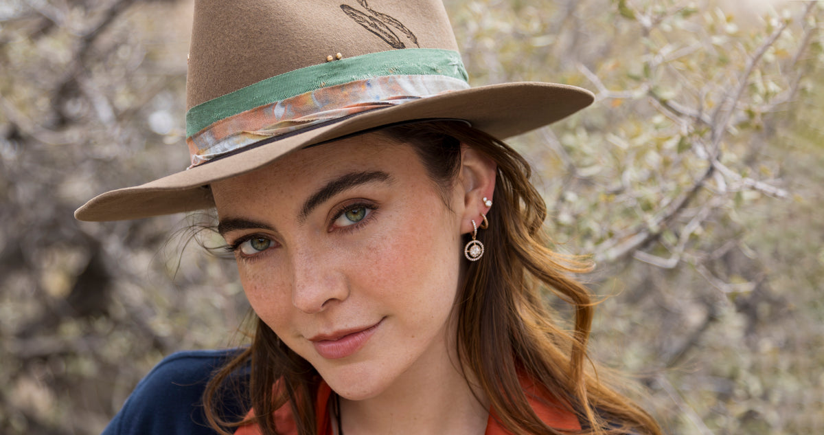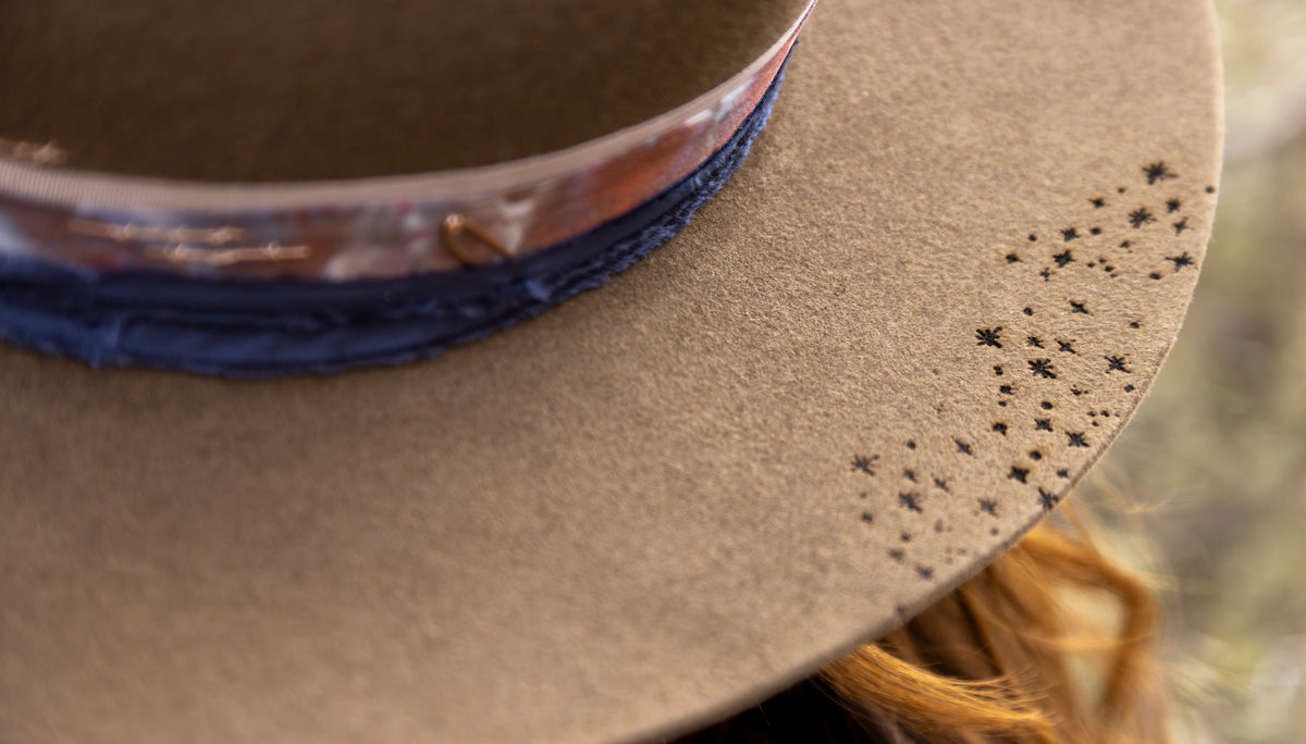 Classic master craftsmanship, classic cowboy silhouette — broadened a bit through the crown for more flowing (and flattering) modern angles. Artfully adorned in signature DC jewelry, hand-tooled distress work and embroidery, silk textiles, cotton textiles, and DC burn motifs. With...