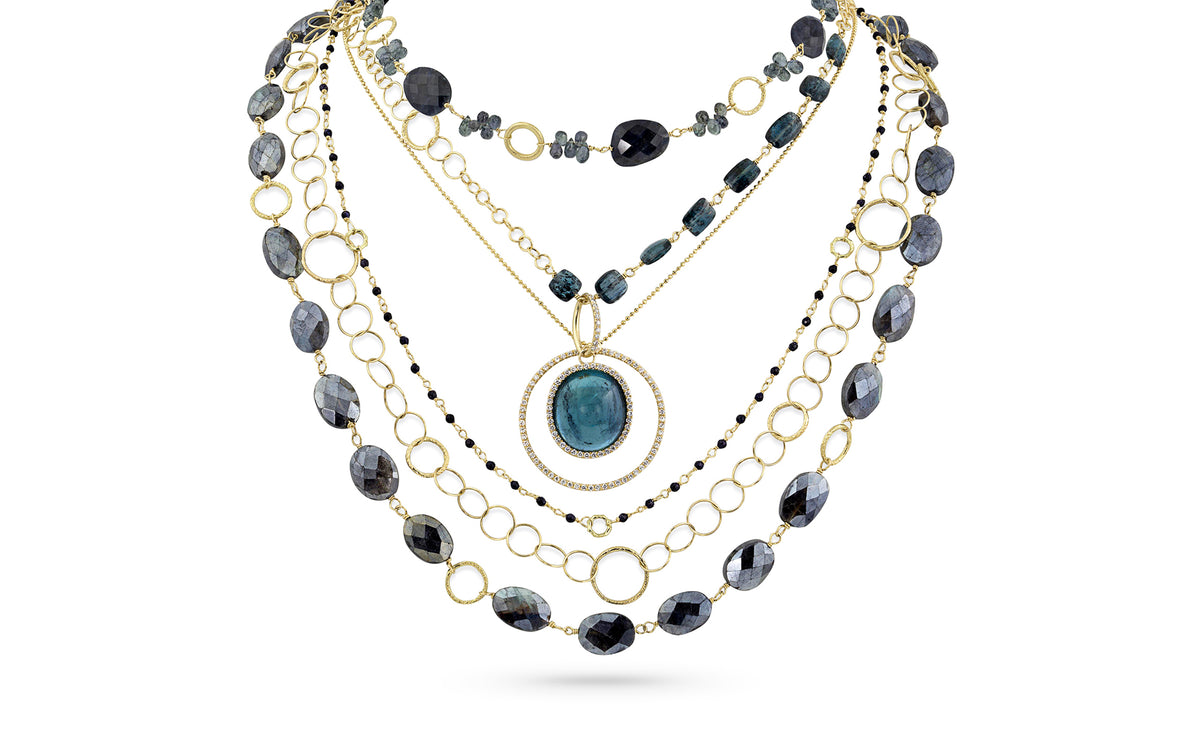 This iolite is a classic bestseller: Deep blues with hints of purples strung along 18k yellow gold. You'll love it — and wear it!Delicate solo — long or looped — or layer to bring delicate scale and texture to your...