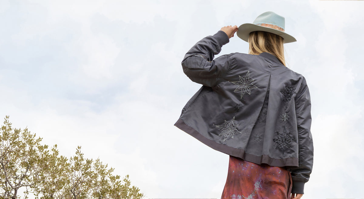 Classic master craftsmanship, chic sloping fedora silhouette. Artfully adorned in signature DC jewelry, hand-tooled embroidery, silk textiles, cotton textiles, and DC burn motifs. With the textural, harmonizing design flow and the attention to detail you love (and expect) from Dominique...