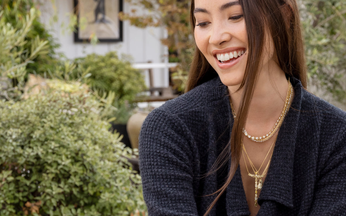 Our tennis necklaces infuse your tiering neck stacks with stylish sparkle. Here, our contemporary take on the traditional riviera (graduated setting size) tennis necklace style — bezel rather than prong settings + artfully spaced to flatter rather than overwhelm while...