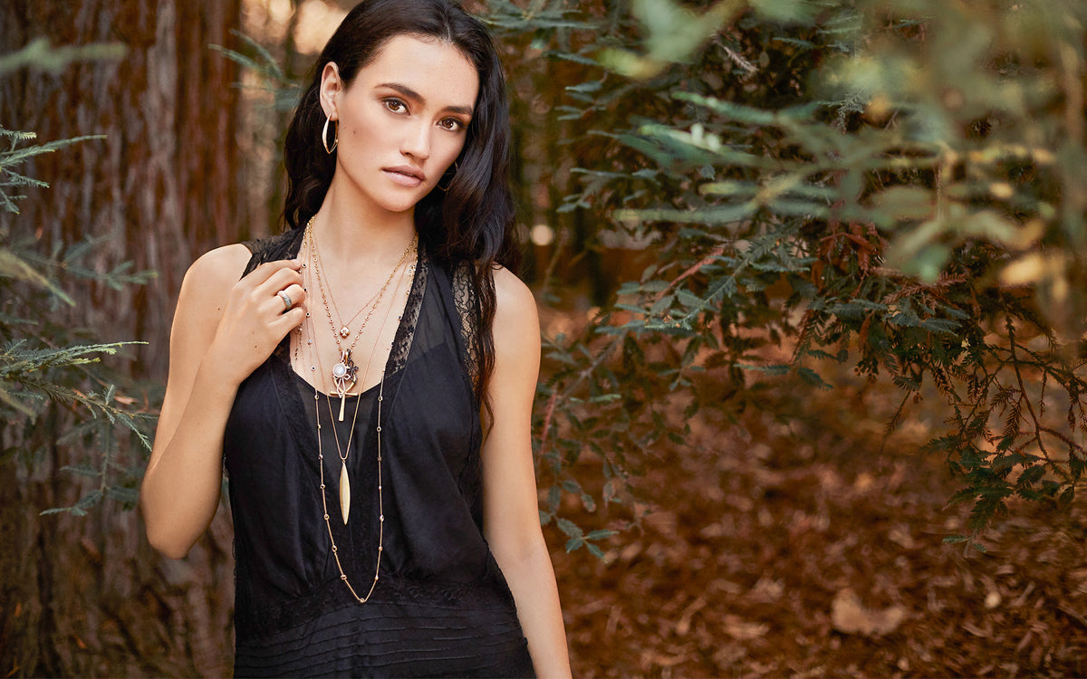 Sophisticated black-diamond-kissed delicate station necklace with iconic Dominique Cohen bamboo-texture feature links. A must-have style for every gal's jewelry wardrobe! Handsomely delicate solo — for instance, wrapped as one short loop, choker style, above one hung long — and invitingly...