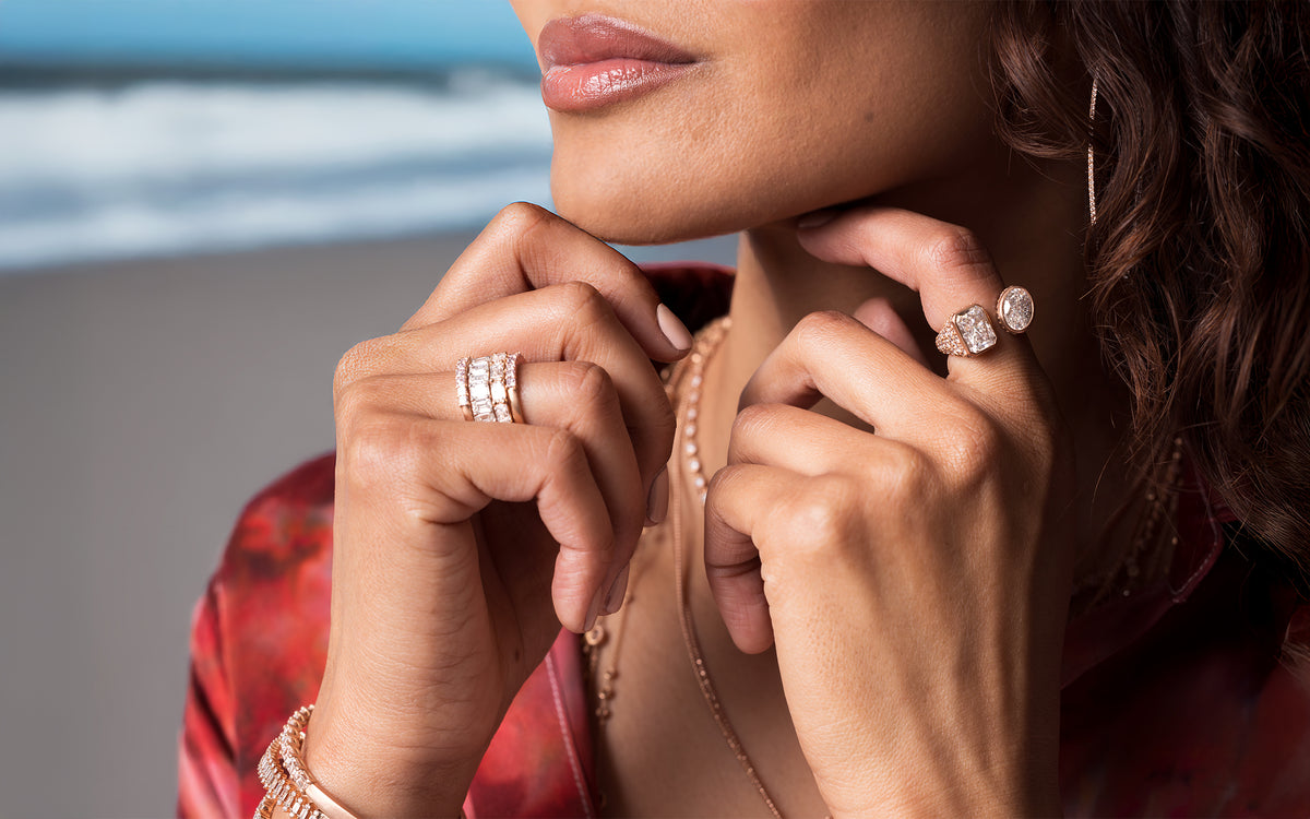 One of a kind beauty, for a one of a kind you. Tone-on-tone allure in sparkling pink, slightly peachy, calming hues. Ya, you'll wear this one — as an every day solo, layered into your rose gold stacks, even dressed...