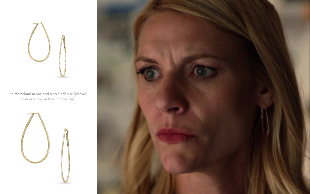 Did you catch these sparkle-pop beauties on Claire Danes playing Carrie Matheson during the series finale of Homeland on Showtime? Ms. Danes wore our diamond hoop "Carrie" earrings + our popular "Carrie" round diamond pendant necklace, a gift from on-screen love interest Yevgeny...